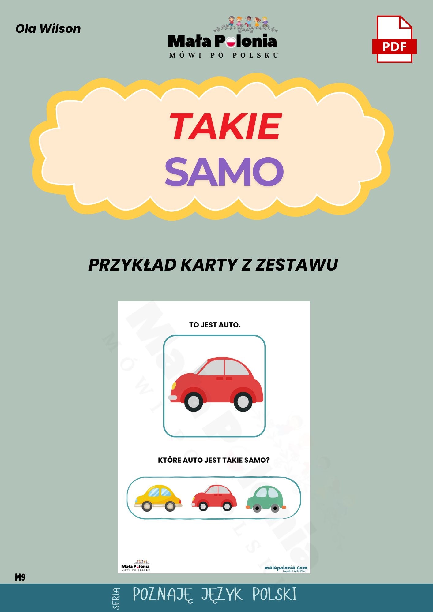 Zestaw 30 kart pracy z serii Poznaję język polski, w którym dziecko najpierw poznaje nazwę przedmiotu, a następnie odpowiada na pytanie w formie „Które… jest takie samo?”. Taka konstrukcja jest naturalna w codziennej rozmowie i zachęca do aktywnego udziału w zabawie.